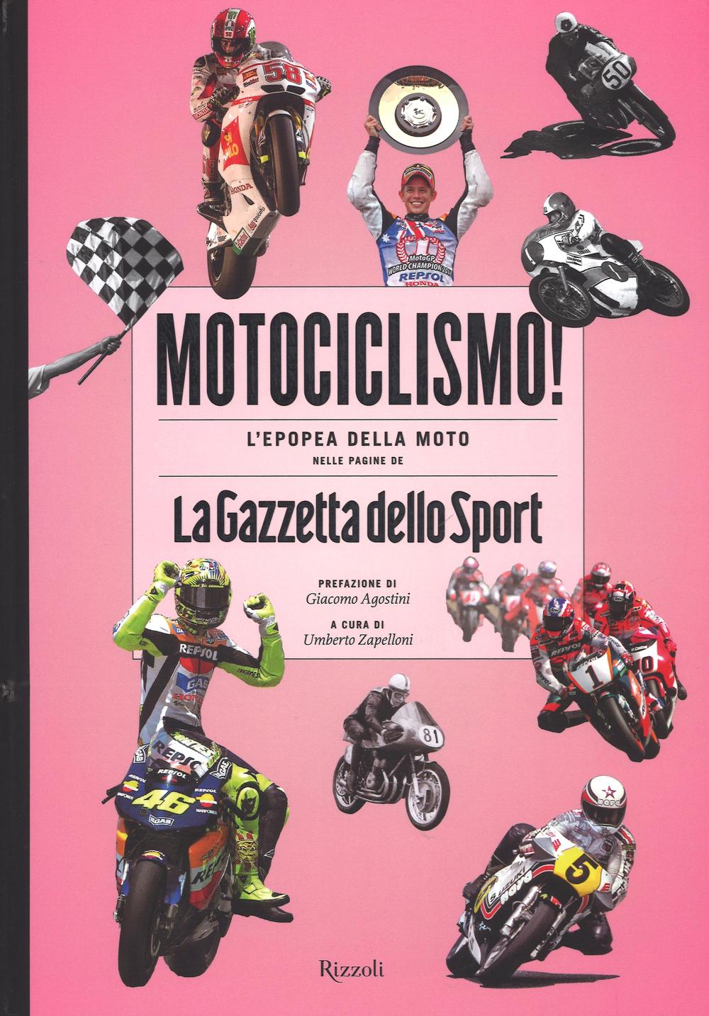 "All'inizio con timidezza, negli ultimi anni con irriverenza, rombando con prepotenza sui rimbalzi del pallone, il motociclismo è stato un ospite fisso sulle pagine della Gazzetta dello Sport. Scorrendo le pagine di questo volume capirete come questo sport si sia guadagnato spazi sul giornale più letto dagli italiani, stagione dopo stagione, vittoria dopo vittoria." Storie di uomini e storie di moto, sopra tutti Giacomo Agostini e Valentino Rossi: 24 titoli mondiali in due, campioni molto diversi che hanno sorpassato la popolarità del loro sport, con in comune la voglia di vincere, di non arrendersi mai. E poi tutti gli altri, piloti italiani e stranieri, uomini che hanno progettato e prodotto modelli vincenti, marchi ormai entrati nella leggenda. Una raccolta inedita, arricchita da saggi illustrati, dedicata a tutti coloro che ci hanno entusiasmato, in pista e lungo la strada che porta alle grandi vittorie. Prefazione di Giacomo Agostini.