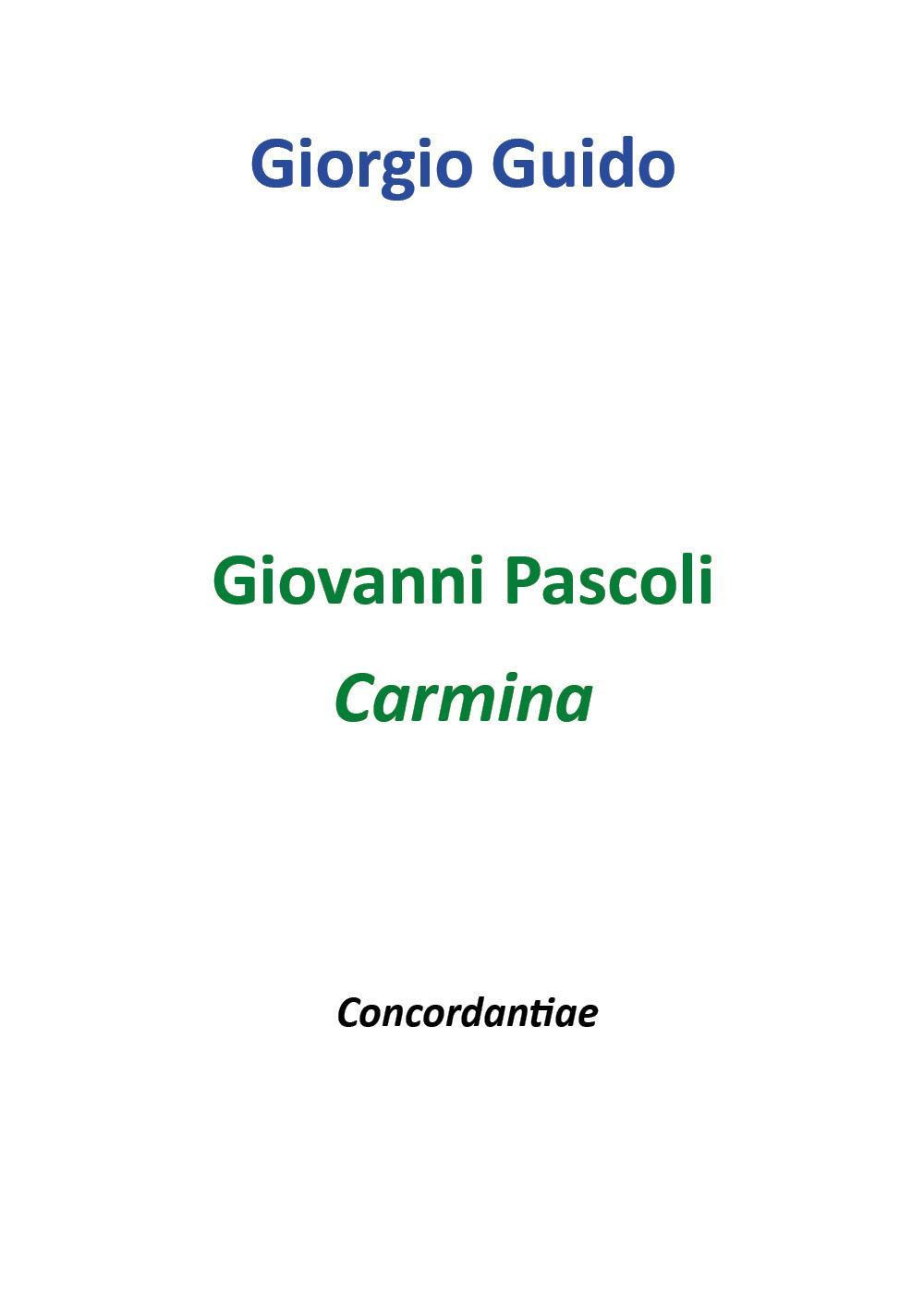 Il volume dedicato ai "Carmina" di Pascoli è il primo di Concordanze della letteratura latina in format KWIC, una collana rivolta alle concordanze dei testi di opere di autori latini, antichi, medievali, rinascimentali e moderni, noti e meno noti, che si propone di mettere a disposizione degli studiosi uno strumento altamente professionale, efficace e affidabile, nonché economico, per le ricerche di tipo terminologico e concettuale. Il volume contiene le concordanze relative ai Carmina di Pascoli, basate sulla classica edizione curata dalla sorella Maria e da Manara Valgimigli.