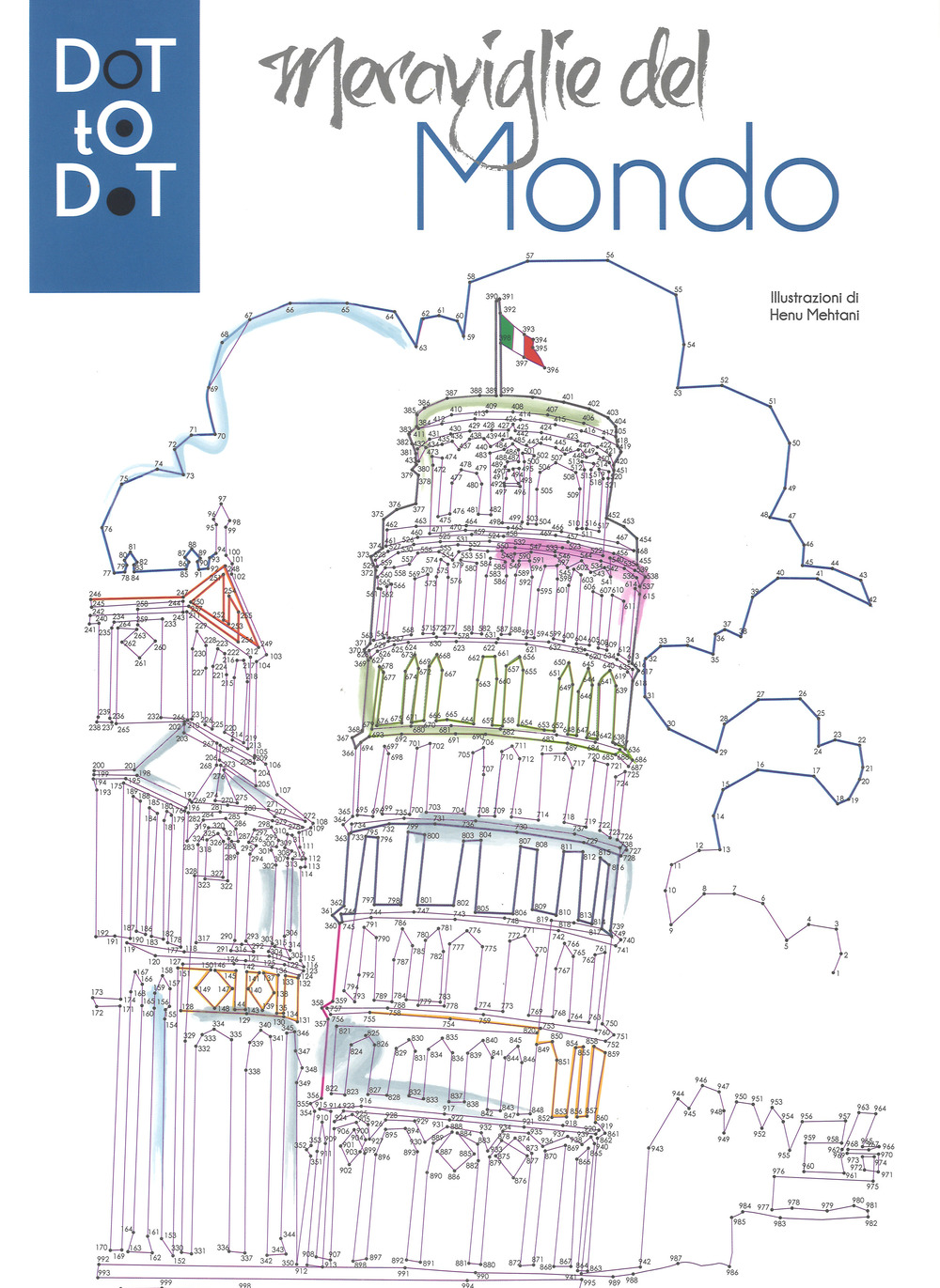 Che cosa può nascere da una sequenza, apparentemente casuale, di centinaia di puntini? La risposta è semplice: ciò che può nascere dalla fantasia! Questo album presenta una raccolta di 40 tavole, i cui disegni andranno a comporsi una volta che avrete unito tra loro i puntini numerati. Scoprirete così i più famosi monumenti del pianeta sotto una nuova veste! Il divertimento non finisce qui: quando avrete completato l'illustrazione, potrete colorarla a vostro piacimento, così da rendere ancora più vivido il monumento raffigurato. Non vi resta che iniziare questo viaggio tra le meraviglie storiche del mondo, che vi regalerà ore di divertimento, impegnandovi in un'attività tanto rilassante quanto appagante.