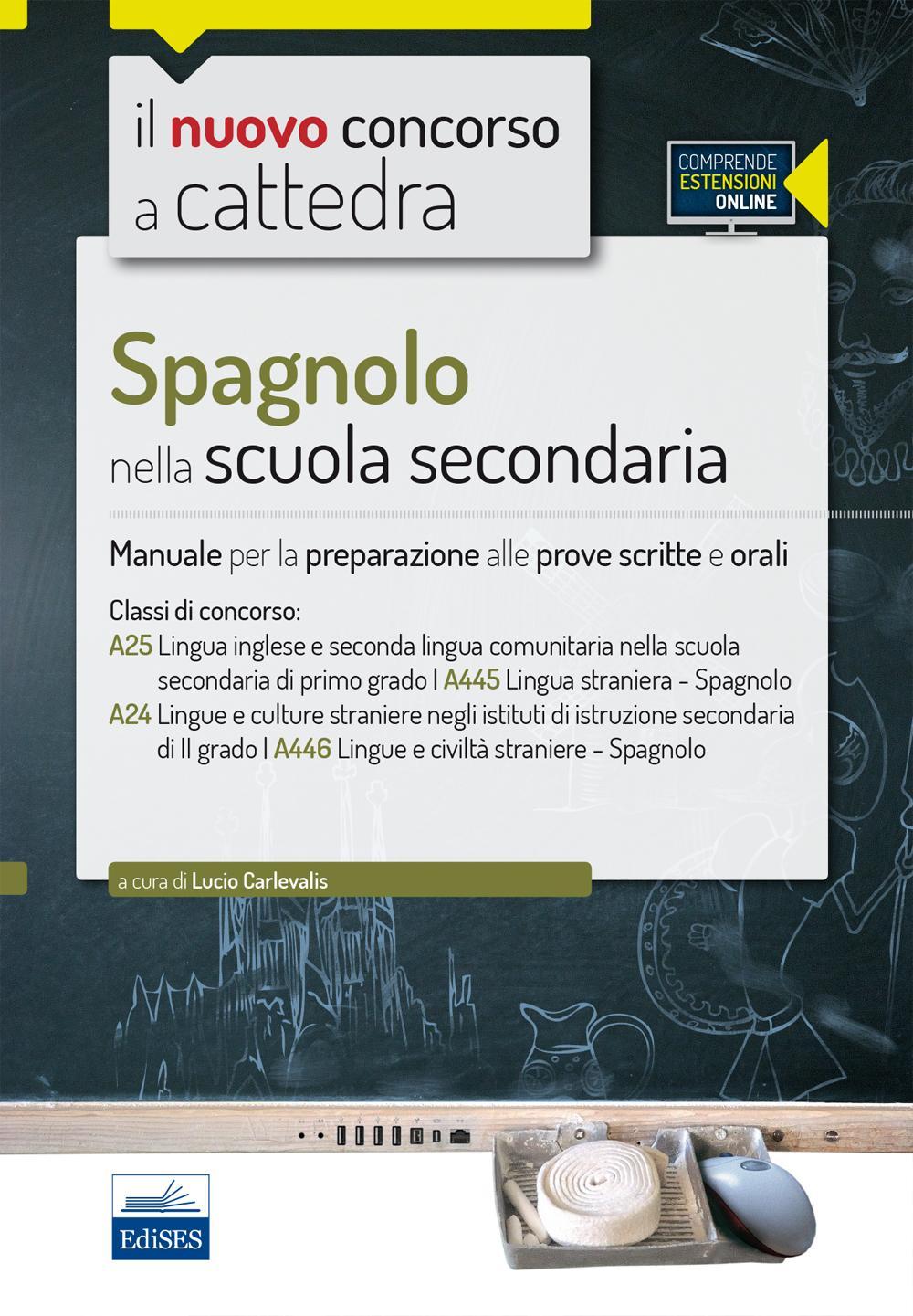 Il volume contiene sia le principali conoscenze teoriche necessarie per superare tutte le fasi della selezione concorsuale, che utili spunti operativi per l'ordinaria attività d'aula. Il manuale è strutturato in più parti. La prima parte del testo è dedicata agli aspetti normativi e ordinamentali correlati all'insegnamento della lingua spagnola. La seconda parte del manuale entra nel vivo della didattica della lingua straniera, fornisce spunti sull'insegnamento della civiltà e tratta del rapporto fra lingua e civiltà con esempi di unità di apprendimento e di organizzazione di attività di classe. La terza parte, in lingua spagnola, analizza le tematiche e gli autori della letteratura spagnola, a partire dalle origini sino all'età contemporanea. La quarta parte consente un veloce ripasso dei principi fondamentali della grammatica spagnola. Il testo è completato da corposi materiali on line, tra cui un'utile Appendice, interamente in lingua spagnola, con nozioni di base sulle competenze psico-pedagogiche e didattiche e con elementi di ordinamento scolastico italiano.