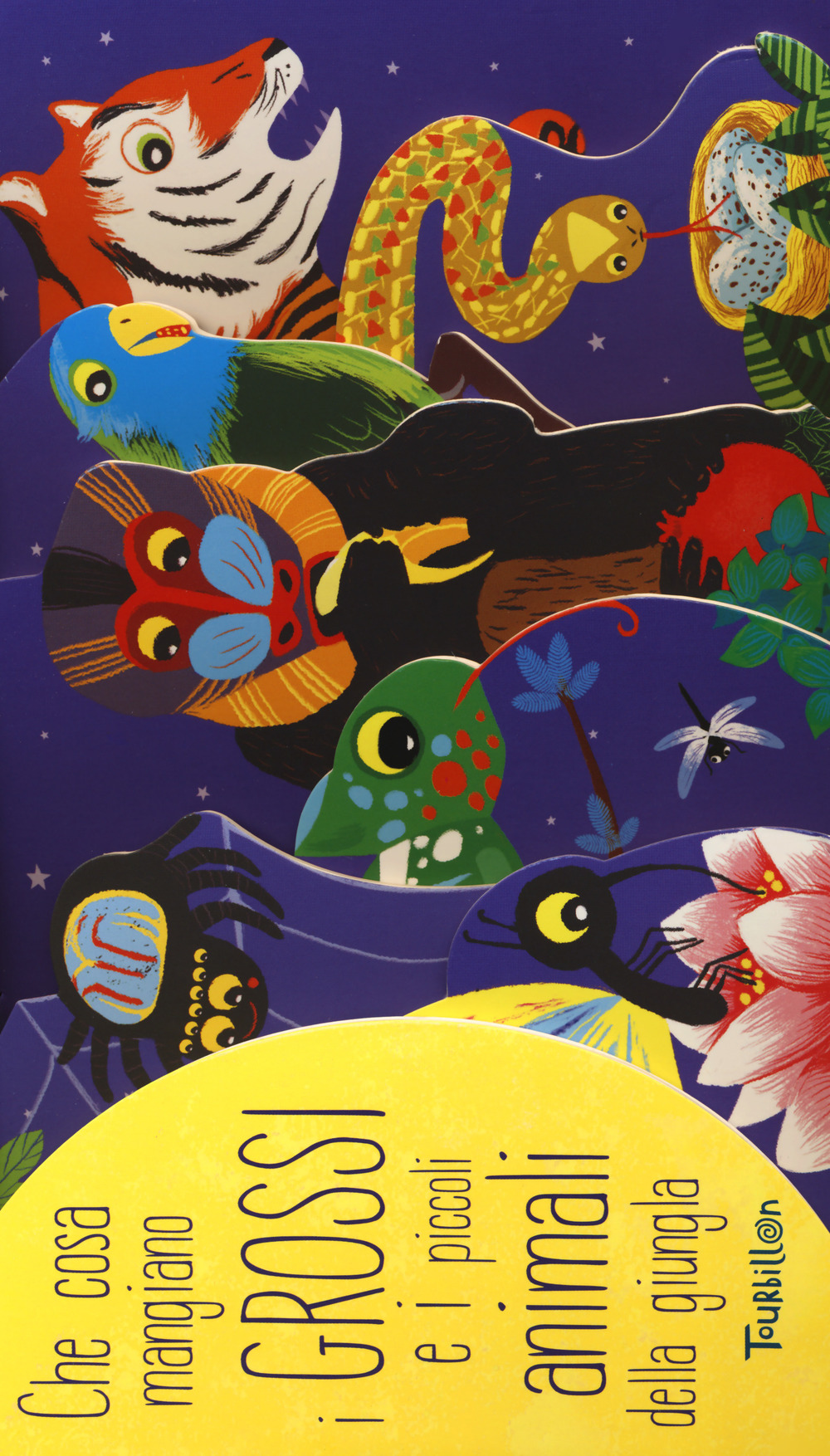 Un libro originale che insegna al bambino a osservare, manipolare, memorizzare e a sviluppare la sua curiosità. Gli animali sagomati e le immagini ricche di dettagli aiutano il bambino a migliorare il suo spirito di osservazione e a imparare le buffe abitudini alimentari degli animali della giungla. Età di lettura: 0-2 anni.