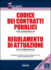Il decreto legislativo 12 aprile 2006, n. 163 (Codice dei contratti pubblici relativi a lavori, servizi e forniture in attuazione delle direttive 2004/17/CE e 2004/18/CE) coordinato con i decreti correttivi: D.Lgs. n.?6/2007 (Primo correttivo); D.Lgs. n. 113/2007 (Secondo correttivo); D.Lgs. n. 152/2008 (Terzo correttivo) e, per ultimo, con il D.L. 7 maggio 2012, n. 52 (c.d. Decreto Spending Review), consta di 257 articoli e 21 allegati, recepisce le due direttive 2004/17/CE e 2004/18/CE e mette ordine nel corpo normativo relativo ai lavori pubblici realizzando un codice che abroga ben 29 tra leggi, decreti e regolamenti (tra le altre la Legge n. 109/1994) ed oltre 100 articoli sparsi in circa 30 altre disposizione di legge. Il provvedimento, entrato in vigore l'1 luglio 2006, ha avuto una fase transitoria lunga e complessa ed è andato a regime dopo l'entrata in vigore del Regolamento di attuazione del Codice dei contratti emanato con decreto del Presidente della Repubblica 5 ottobre 2010, n.207. Con decreto del Presidente della Repubblica 5 ottobre 2010, n.207 è stato emanato il Regolamento di attuazione del Codice dei contratti. Il Regolamento è entrato in vigore l'8 giugno 2011 (articolo 253, comma 2 del Codice) ad esclusione delle disposizioni relative alle sanzioni alle imprese e alle SOA.