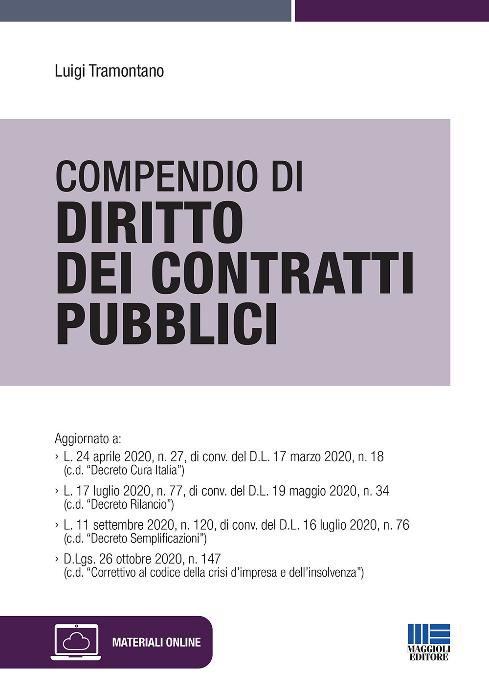 Il volume si rivolge a tutti i concorrenti ai pubblici concorsi, a docenti e studenti universitari, ad avvocati e magistrati, nonché alle pubbliche amministrazioni centrali e periferiche, che per ragioni di studio, di lavoro o di competenza si muovono nei diversi ambiti che si interfacciano con il diritto dei contratti pubblici. Il testo scandaglia tutti gli strati evolutivi della materia tenendo conto dei molteplici interventi riformatori e lo fa senza mai distogliere lo sguardo dal passato, perché, sappiamo bene che, nel campo del diritto, ogni singola norma è il portato di un processo evolutivo lungo e complesso di cui occorre conoscere le singole tappe. Il manuale riesce così a connettere e far dialogare tutte le articolazioni della disciplina ponendo in rilievo i profondi mutamenti intervenuti nell'ultimo anno peraltro segnato da una situazione emergenziale senza precedenti. Nella sezione online, raggiungibile seguendo le istruzioni riportate in fondo al testo, è riportata un'Appendice Normativa integrativa e di completamento del volume all'interno della quale sono disponibili fondamentali provvedimenti legislativi di rilievo nazionale e sovranazionale che risultano indispensabili per completare il percorso di studio in materia di contratti pubblici. Luigi Tramontano Giurista, già Docente a contratto presso la Scuola di Polizia economico-finanziaria della Guardia di Finanza, è autore di numerosissime pubblicazioni giuridiche ed esperto di Tecnica legislativa, curatore di prestigiose banche dati legislative e direttore scientifico di corsi accreditati di preparazione per l'esame di abilitazione alla professione forense.