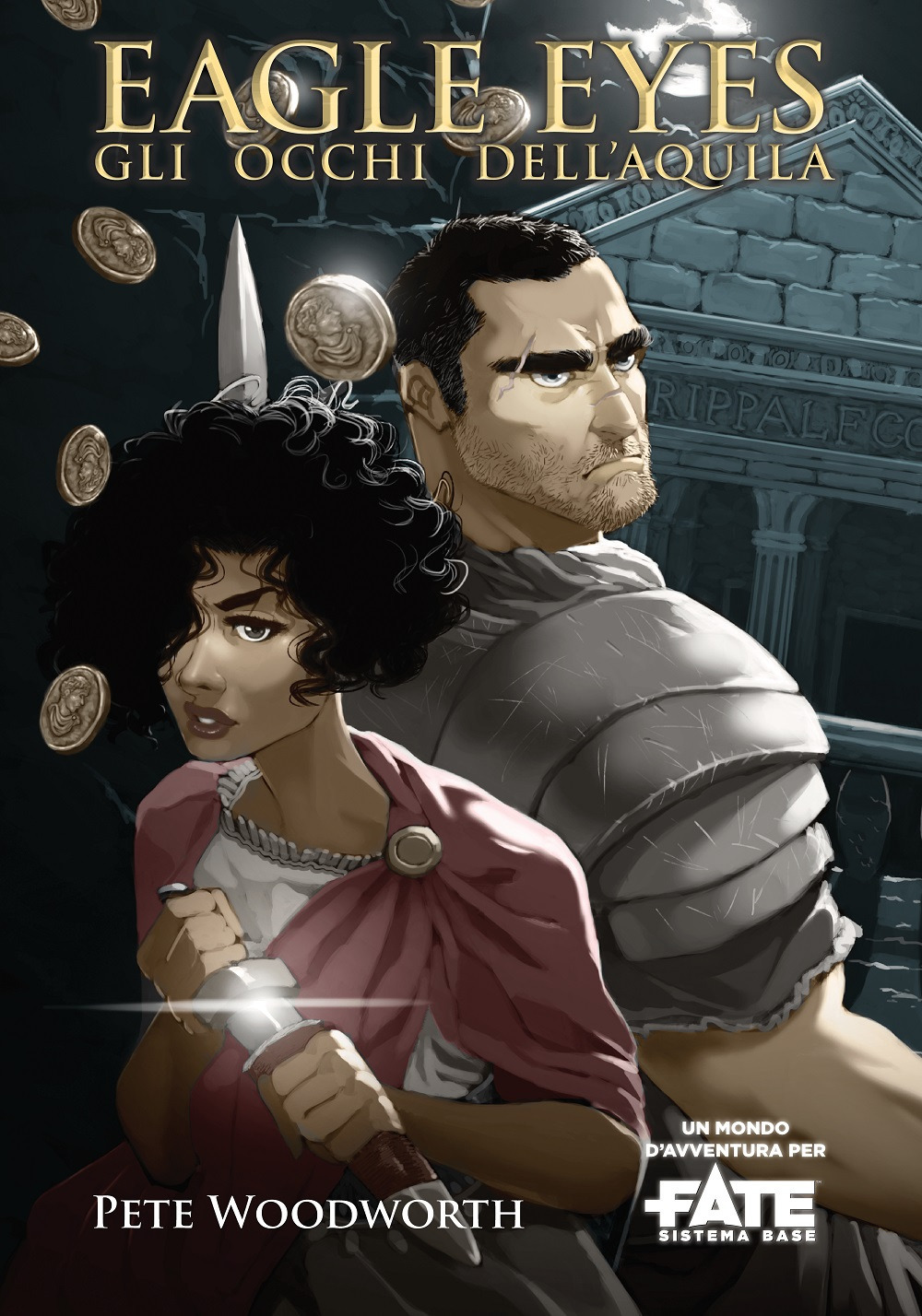 "Eagles eyes. Gli occhi dell'aquila" è un mondo d'avventura per Fate sistema base o Fate accelerato: un noir ambientato nell'Antica Roma, dove affrontare cinismo e corruzione all'ombra del Colosseo. In "Eagles eyes. Gli occhi dell'aquila", scritto da Pete Woodworth, interpreterete le Aquile, gli investigatori privati del Senato, e userete qualsiasi mezzo a vostra disposizione per arrivare alla verità. Affilate le lame. È tempo di scendere per le strade di Roma sporche e violente. La vita vale poco e la polvere di Roma assorbe molto sangue, ma le ricompense per chi sopravvive sono al di là dei sogni degli uomini più umili. Per giocare "Eagles eyes. Gli occhi dell'aquila" è necessario Fate accelerato oppure Fate sistema base. Il manuale comprende una revisione degli approcci di Fate accelerato per permettere ai personaggi di invocare le divinità romane e note per i game master sulla gestione di personaggi di stati sociali differenti.